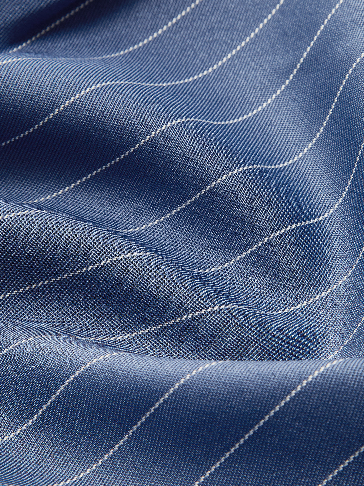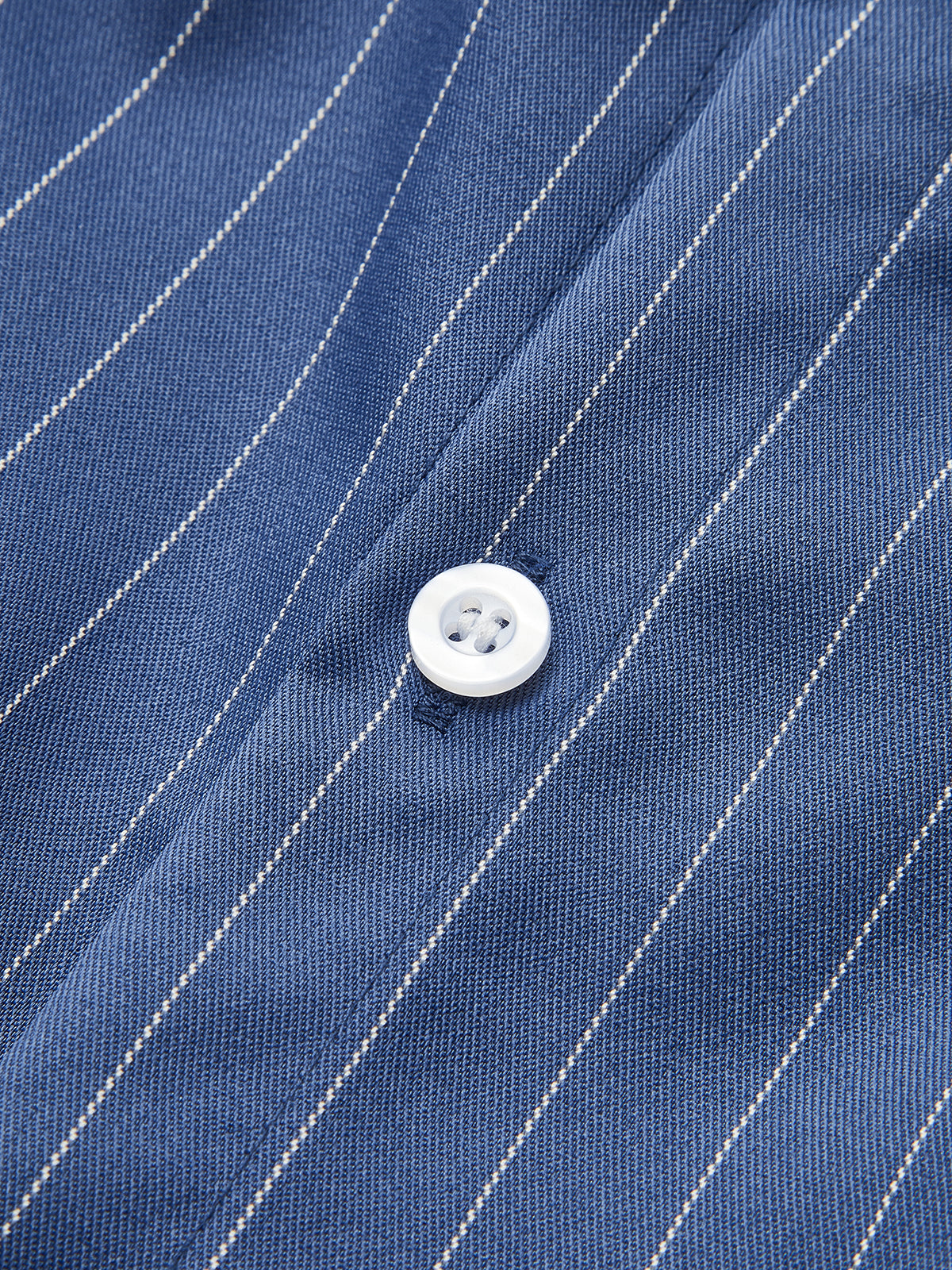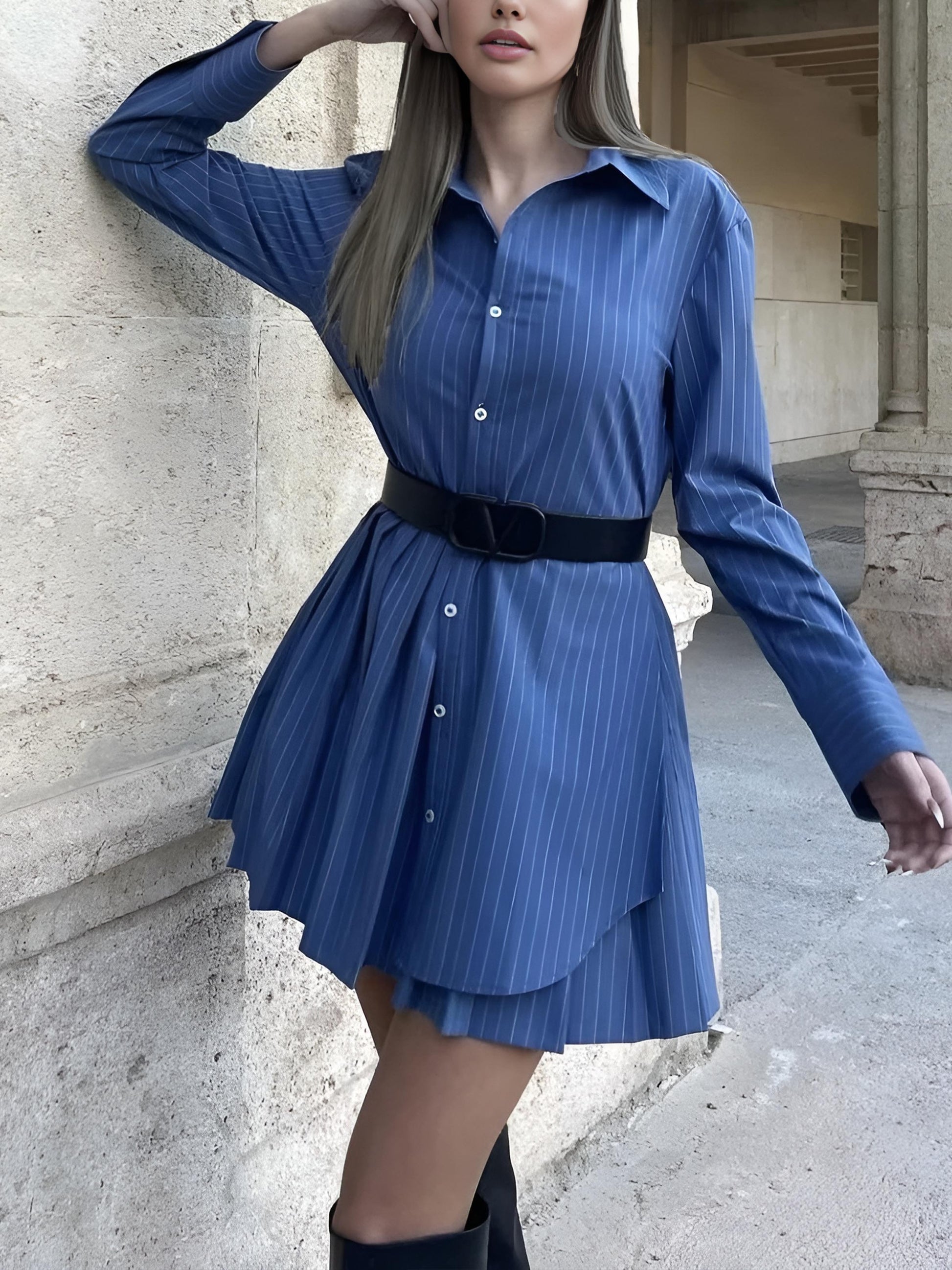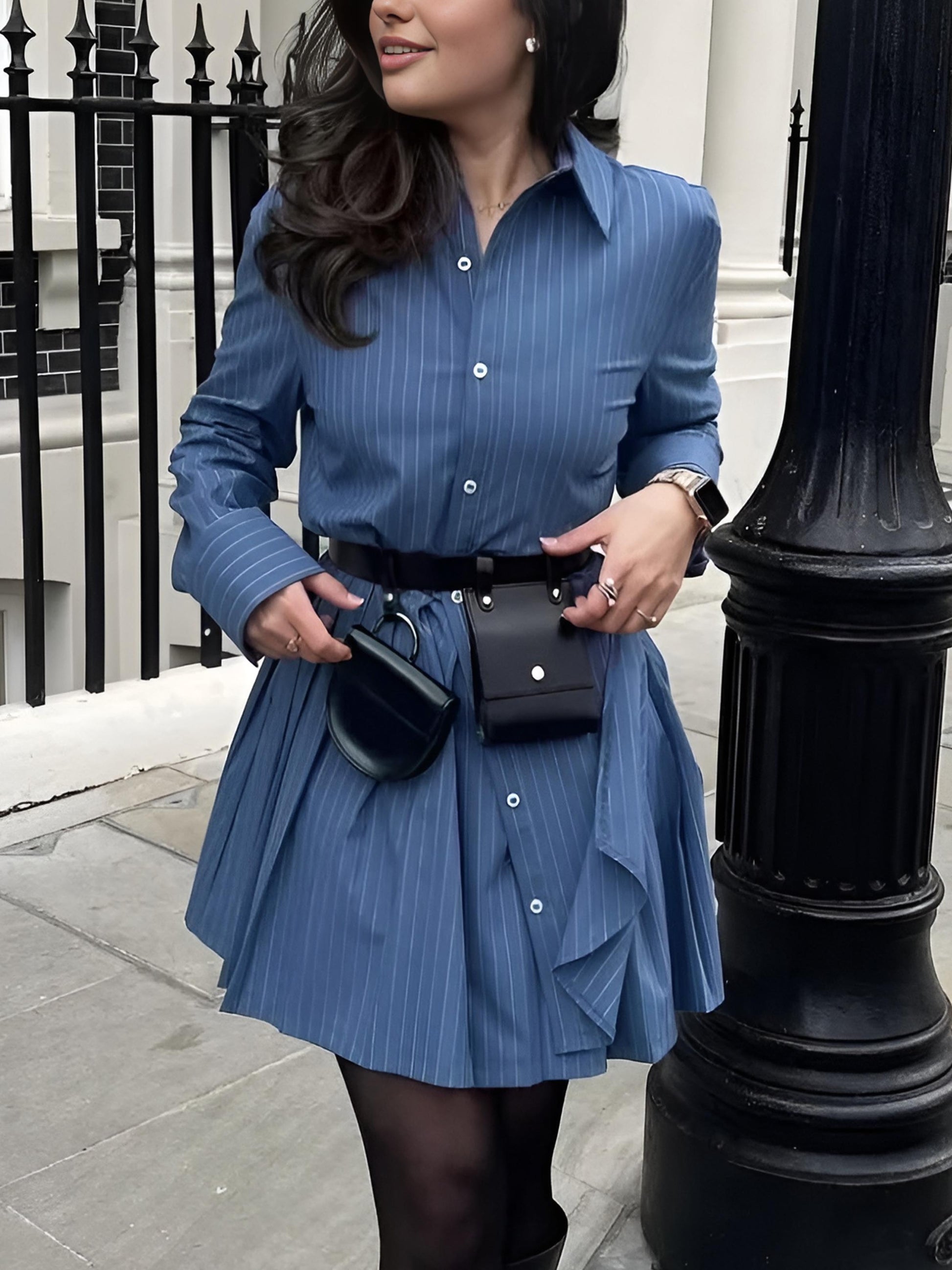 Asimetrik Çizgili Plise Yaka Elbise Lacivert Uzun Kol