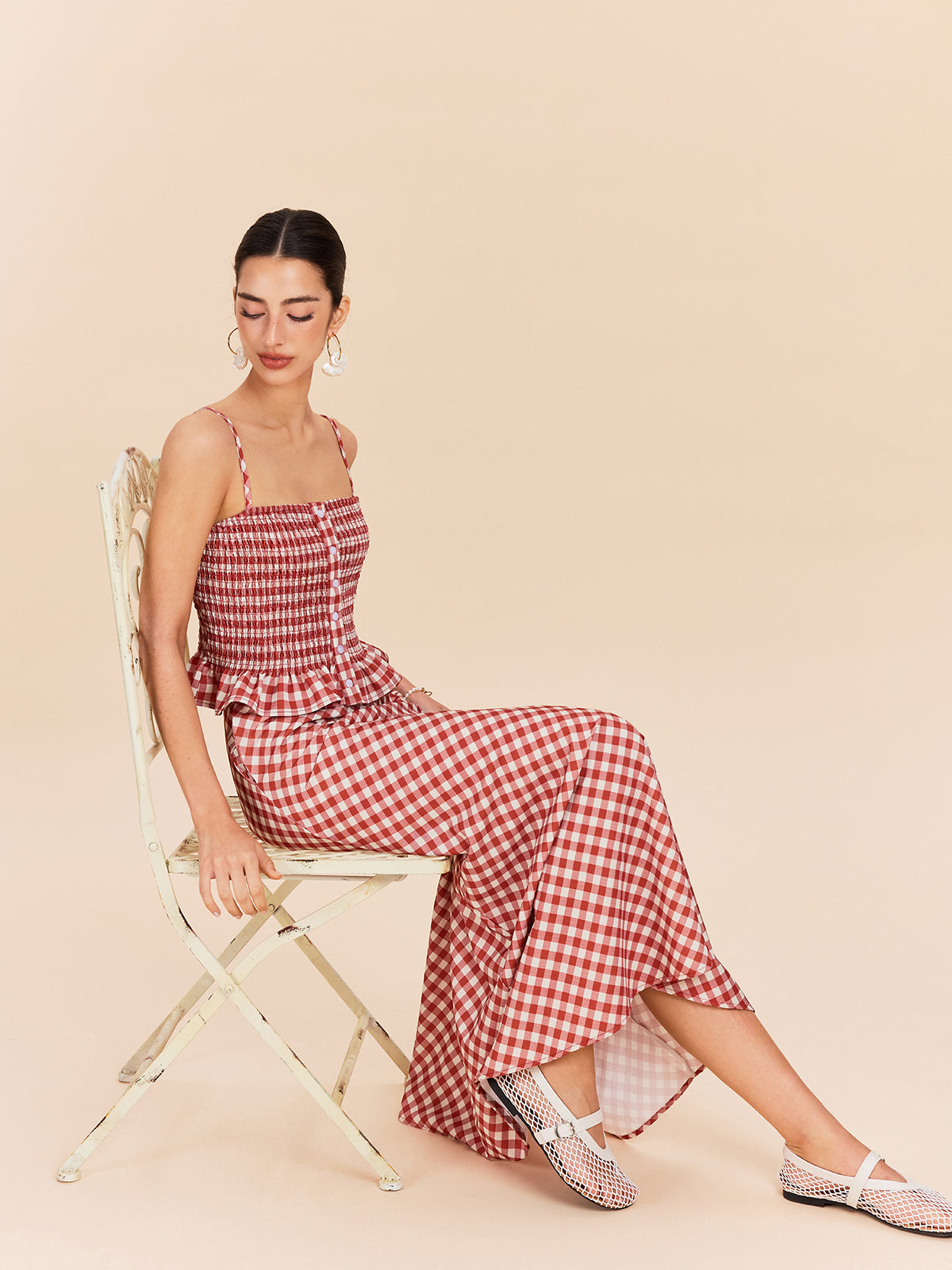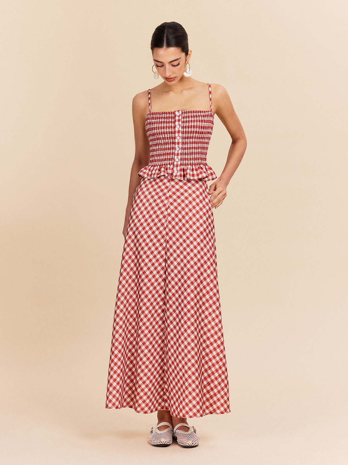 Kareli Cepli Maxi Etek Kırmızı Vintage Tarzı