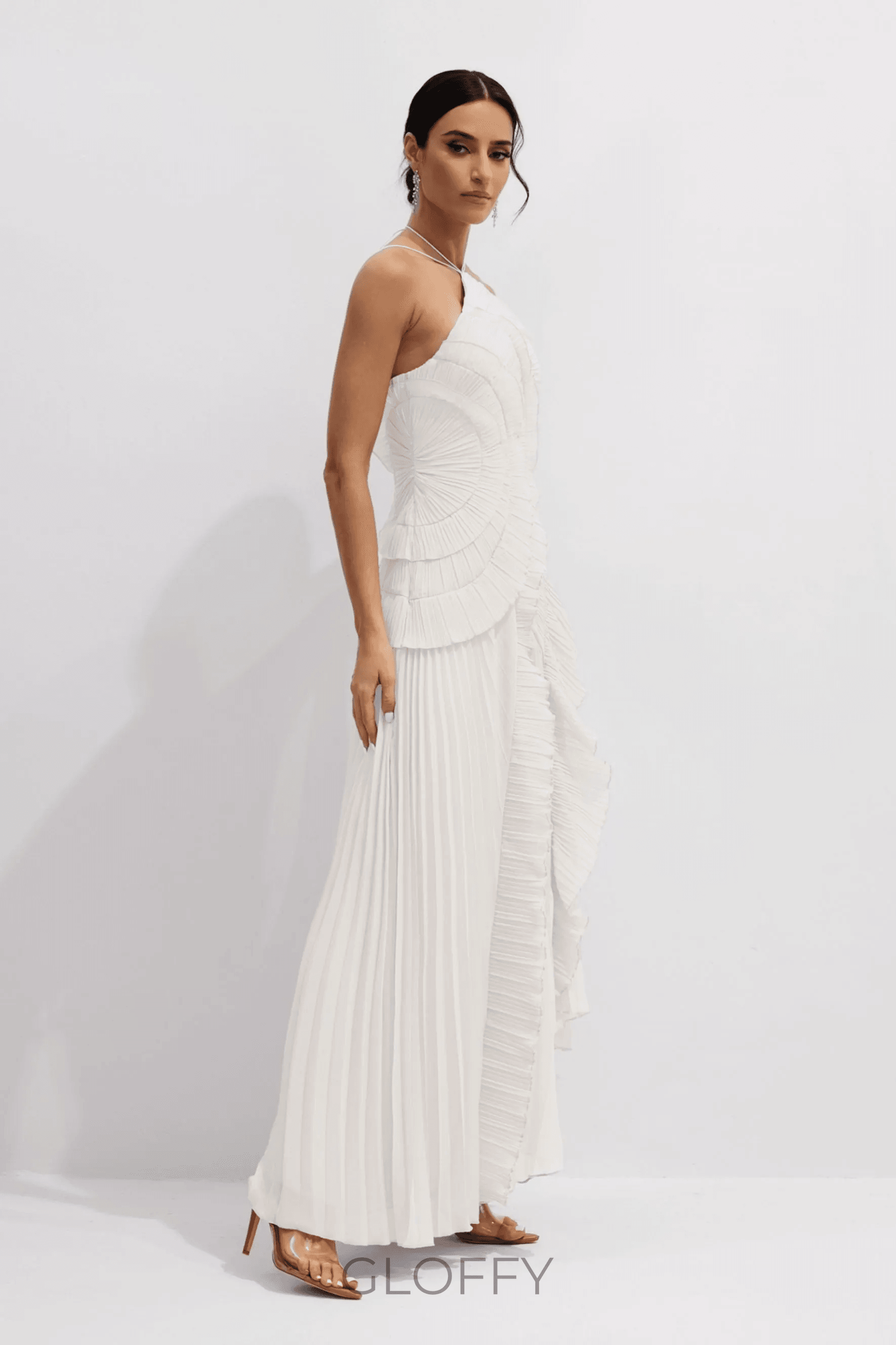 Stil Notu: Aureé Royale’in göz kamaştıran Velimora elbisesi, zarafetin modern bir yorumunu sunuyor. Pliseli detayları ve asimetrik tasarımıyla akılda kalıcı bir siluet yaratırken, yırtmaç detayıyla cesur bir dokunuş katıyor.