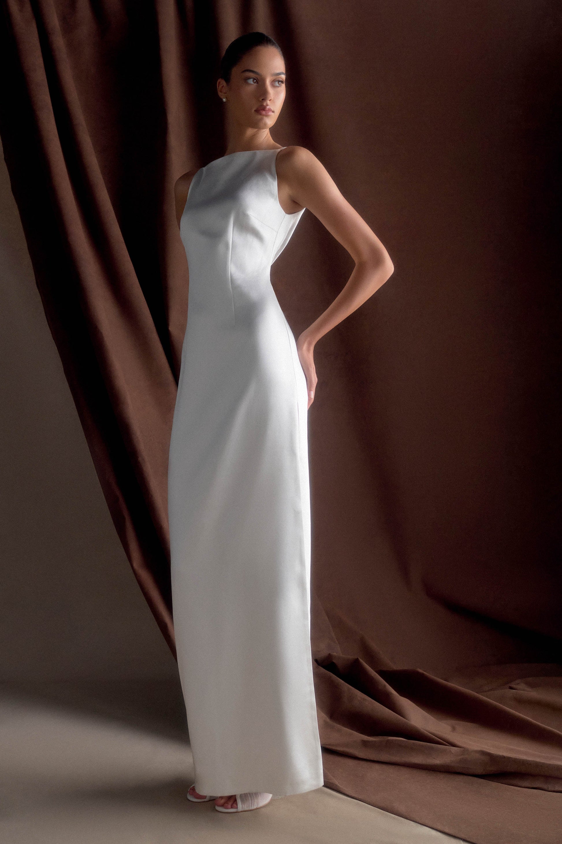 ROF Mor Kolsuz Saten Maxi Elbise - Beyaz